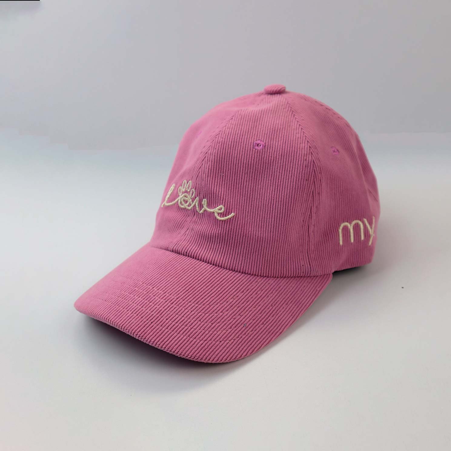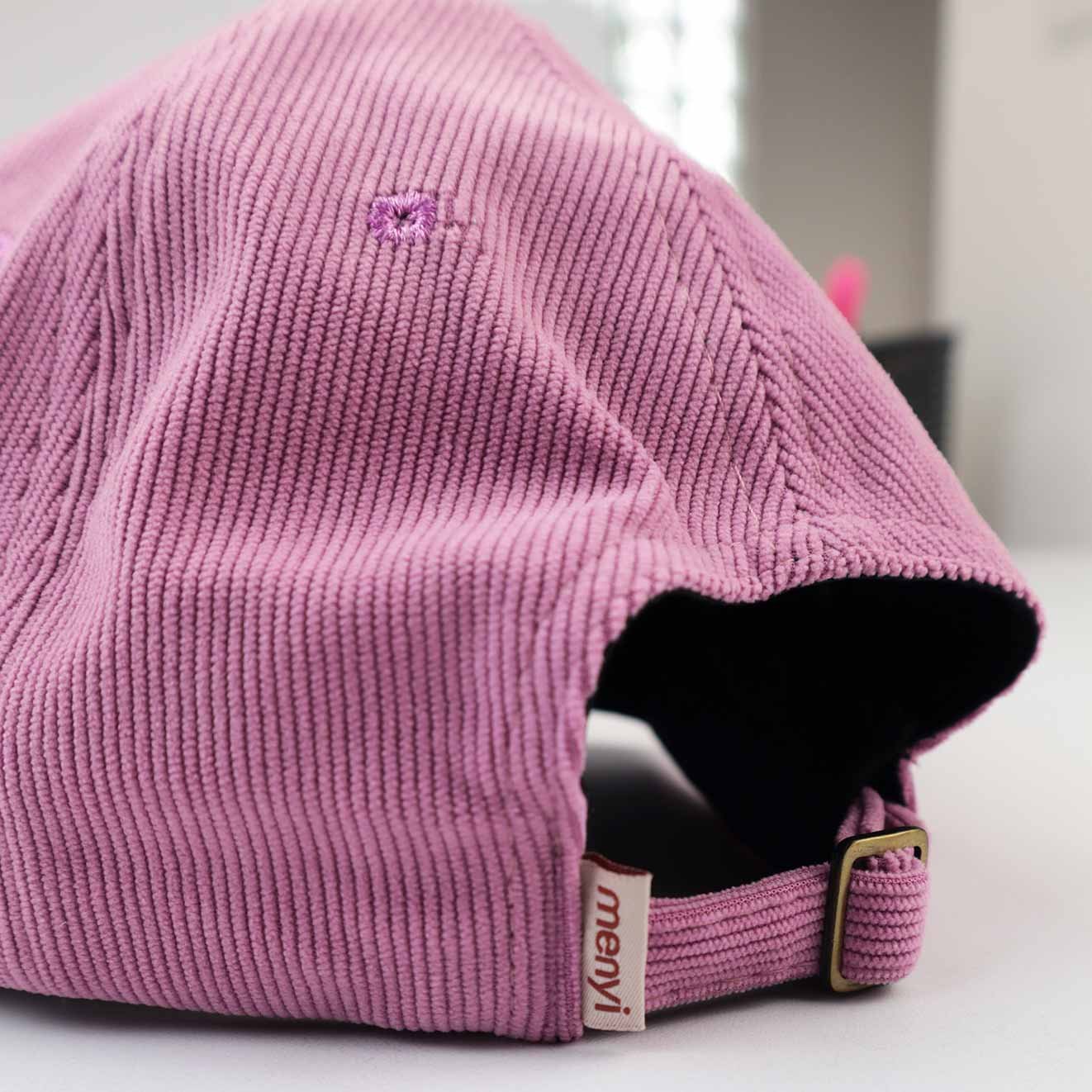 Gorra en pana color magenta para humano, personalizada Love en bordado, producto 100% hecho en Colombia.