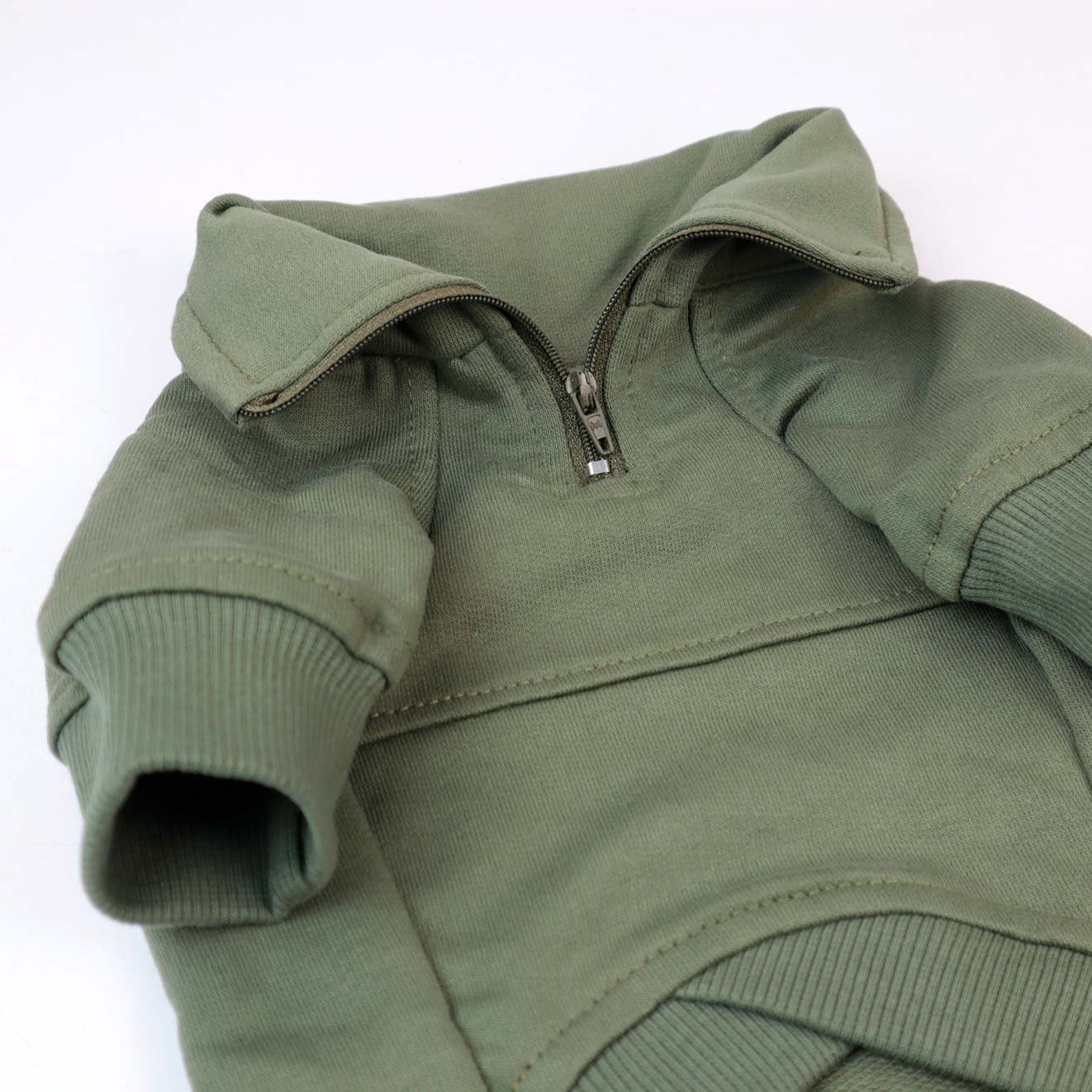 Saco media cremallera está elaborado en burda liviana 100% algodón, un material noble que cuida la piel y garantiza una transpiración óptima durante todo el día al peludo. Cuenta con terminaciones en Rib en el contorno del pecho y las mangas, proporcionando mayor elasticidad y libertad de movimiento, Ideal para climas templados o para proteger del frío ligero sin acalorar.